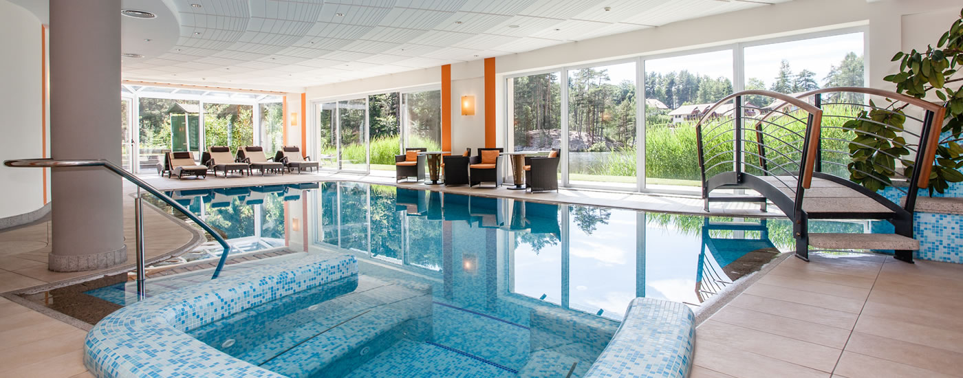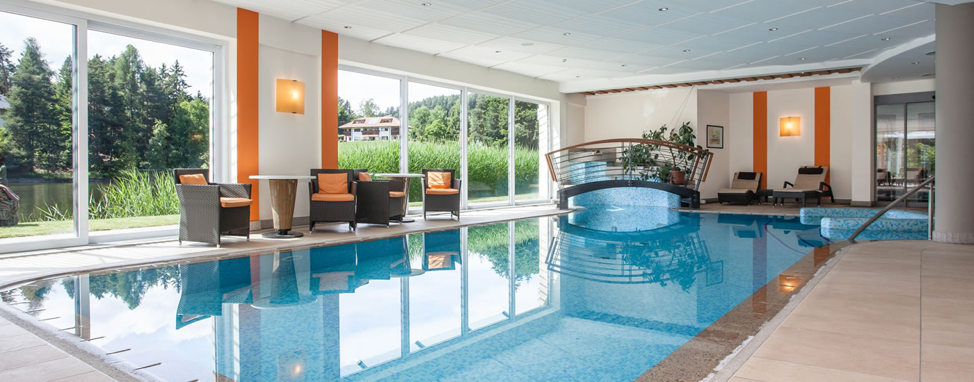 HallenbadLassen Sie sich im angenehmen Wasser treiben und genießen Sie gleichzeitig einen atemberaubenden Blick über den Wolfsgrubenersee.