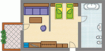 mit 2 getrennten Betten oder mit 1 Doppelbett buchbar